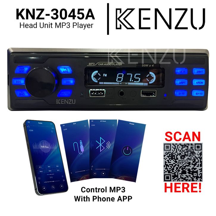 Kenzu KNZ-3045 Head Unit Single Din MP3 Player | Phone App, Bluetooth, USB, AUX, FM Radio, Remote | Tape Mobil Bluetooth