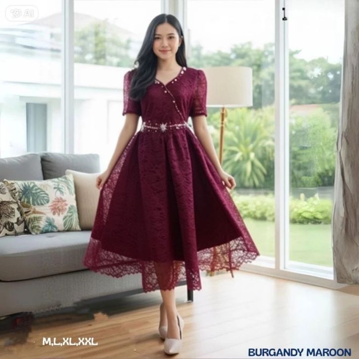 Tania Dress Natal Semi Francis Modern Dress Brokat Kondangan Dress Pesta Mewah Elegan Dress Wanita Terbaru 2025