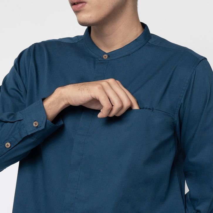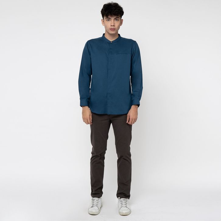Kemeja Pria Shanghai Polos Soft Twill Panjang Navy 1971I