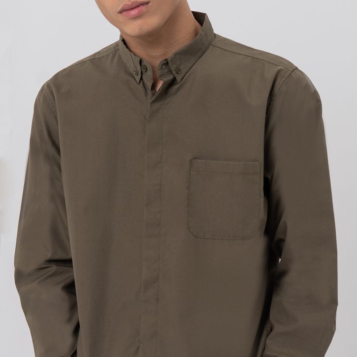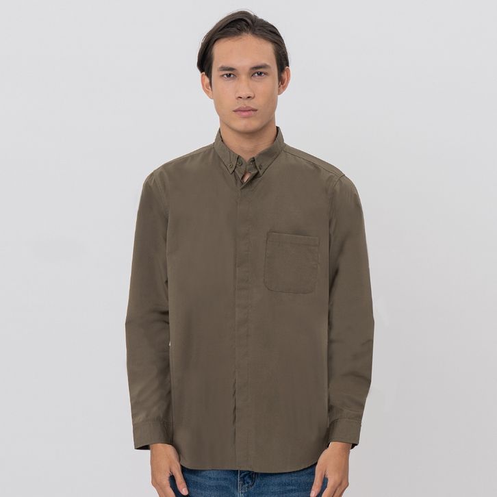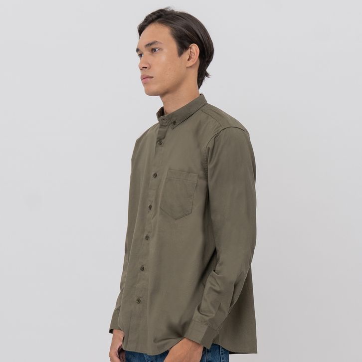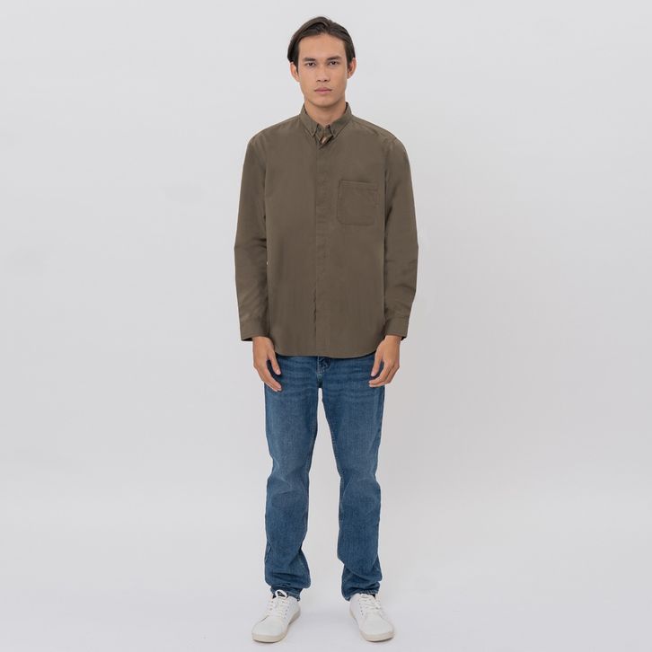 Kemeja Pria Basic Polos Panjang Army 2603F