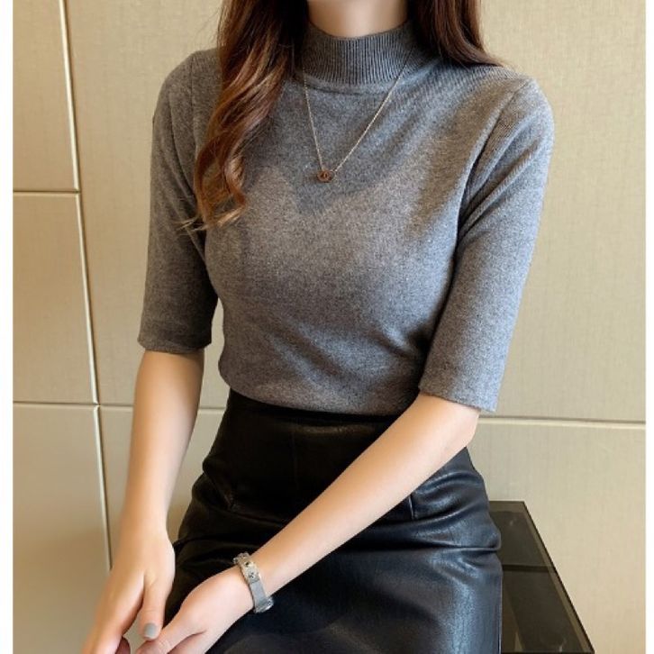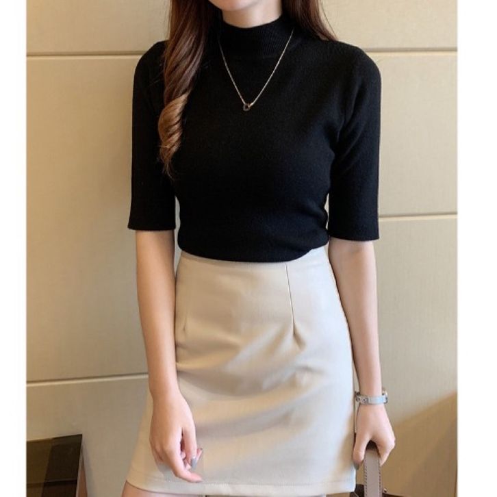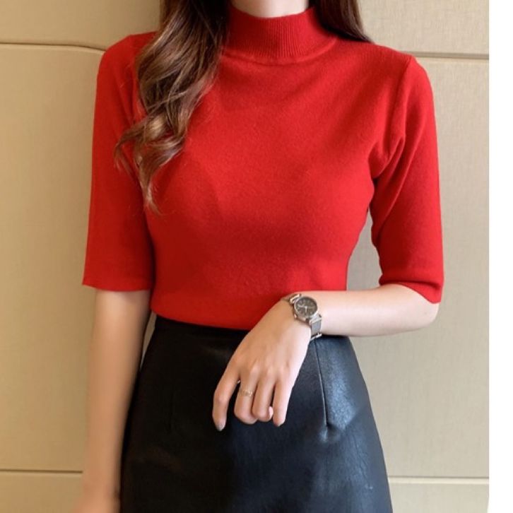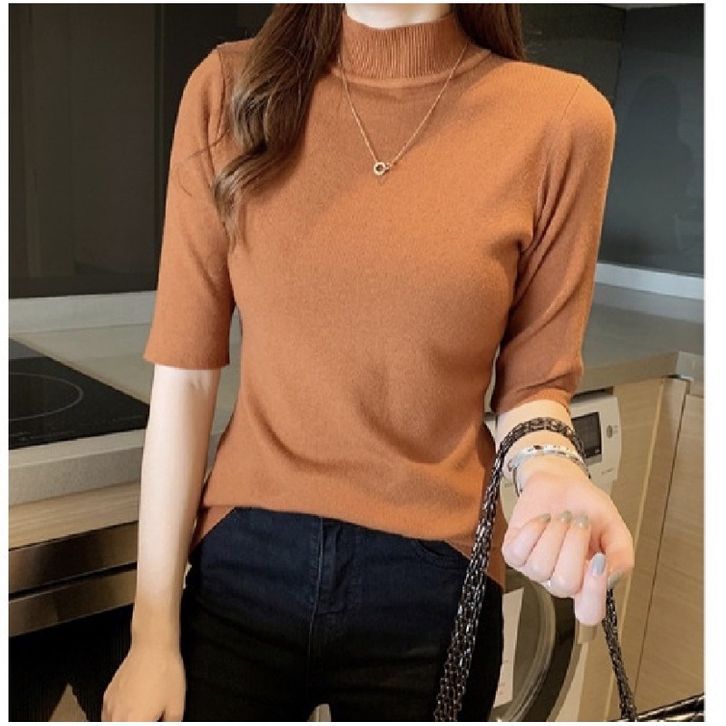 Atasan Rajut Cewek Dewasa Baju Cewek Kaos Import Fashion Korean Style Lengan Tanggung Formal Kasual Bahan Tebal Halus