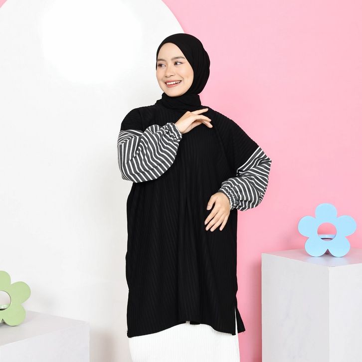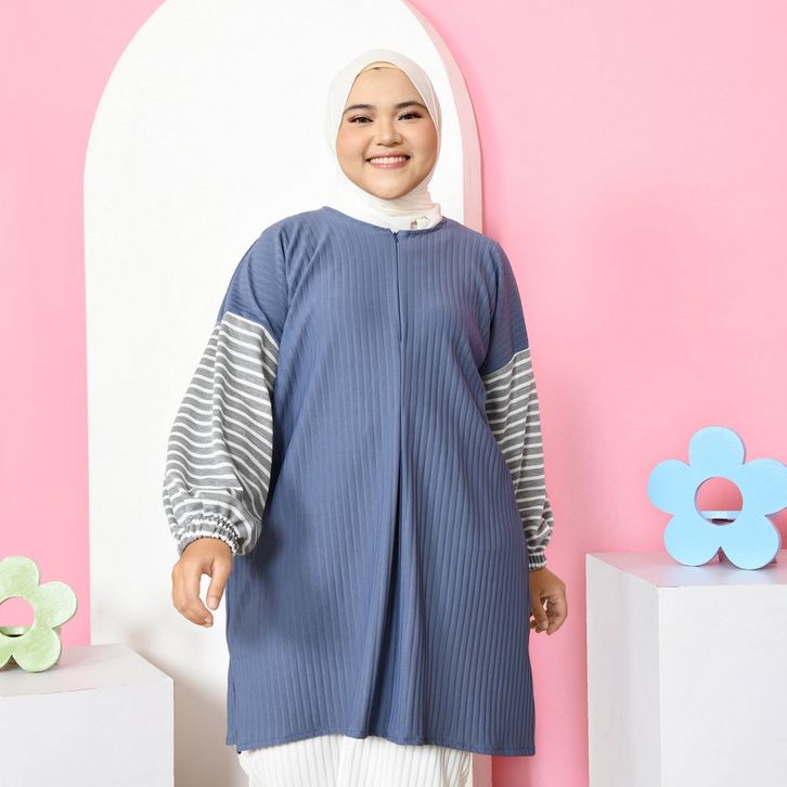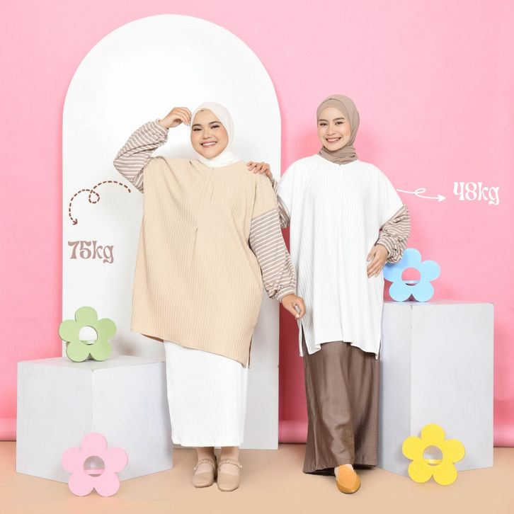 MYBAMUS DASHA STRIPE TUNIK OVERSIZE – ATASAN KNIT JUMBO WANITA – ATASAN LENGAN PANJANG WANITA – TUNIK TERMURAH ORIGINAL