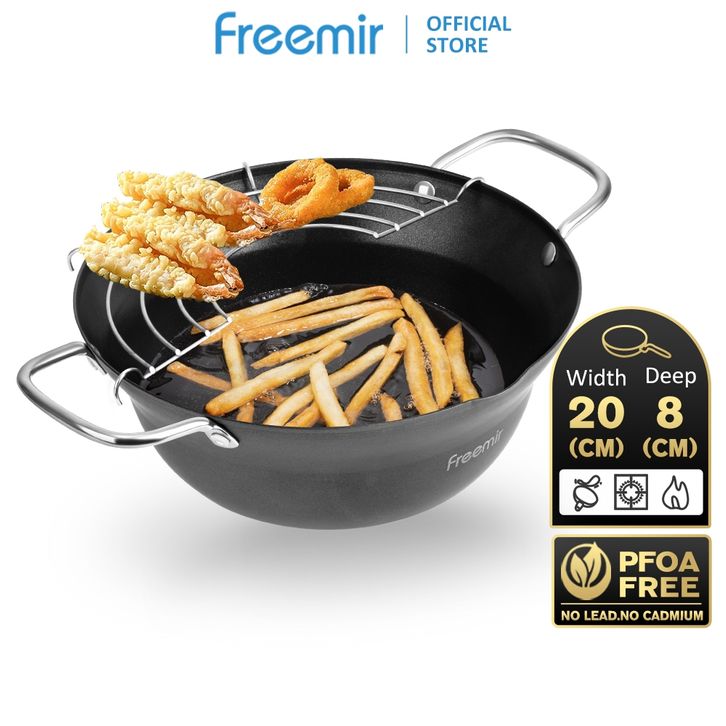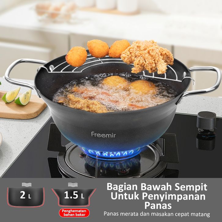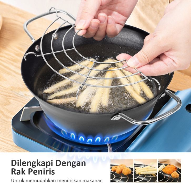 freemir Wajan Penggorengan 20 cm Dengan Rak Tirisan Deep Fryer Pot Panci Penggorengan