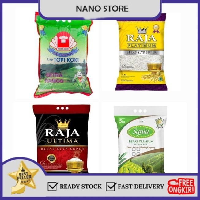 Beras 5 kg PREMIUM (sannia, topi koki, raja platinum, dll) - BEBAS ONGKIR