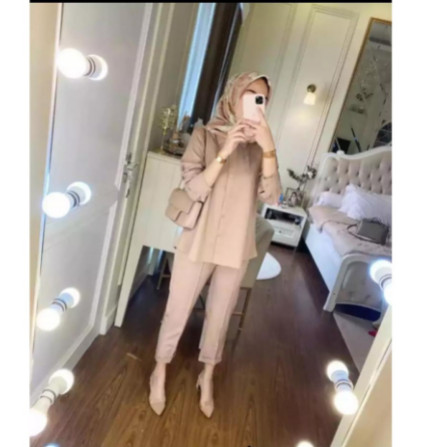 BAJU SETELAN WANITA BAJU SETELAN MUSLIM WANITA SET POLKA TERBARU MURAH - DOVE, M