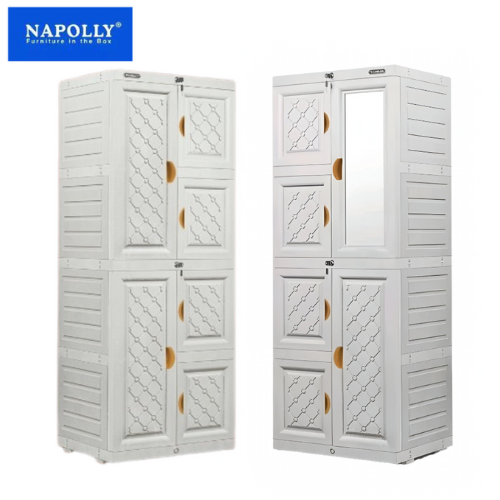 LEMARI NAPOLLY MINI CAB ION 2 PINTU 4 SUSUN RAK BAJU PAKAIAN PLASTIK KACA CERMIN DEWASA ANAK PUTIH PREMIUM MURAH