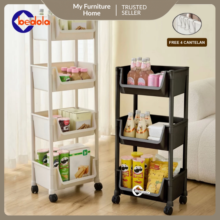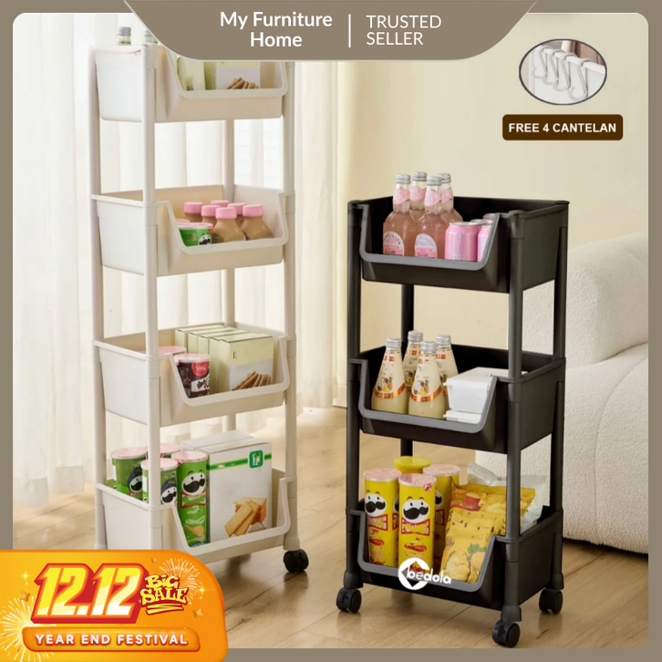 Rak dorong plastik rak dapur serbaguna rak penyimpanan buku rak susun rak toilet kamar mandi portable dengan roda