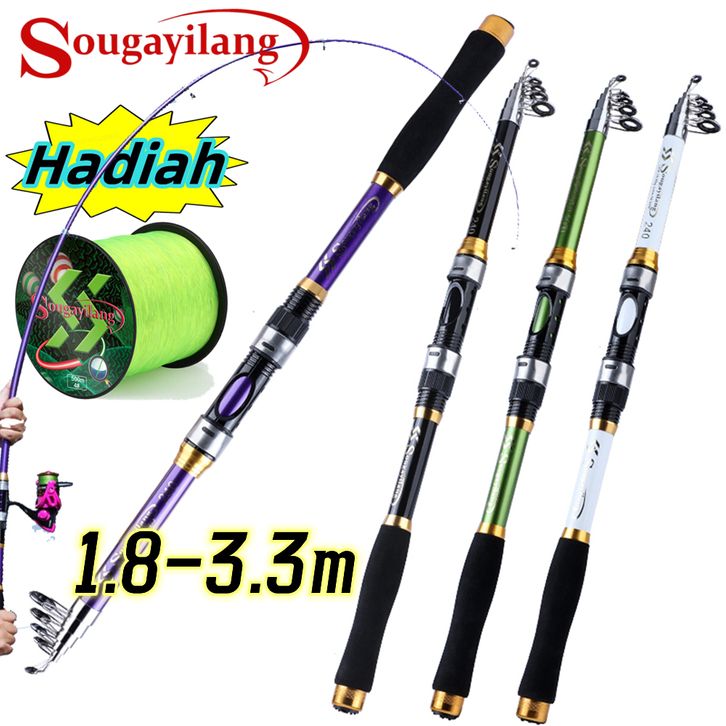 Sougayilang Joran Pangcing 1.8m-3.3m Joran Ultralight Teleskopik u Dan Laut Pangcingan Ungu, Hijau, Putih, Hitam