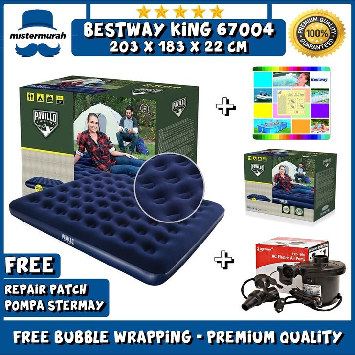 BESTWAY 67004 Kasur Angin KING Size 203 x 183cm / Matras Kasur Angin Karet Sofa Bed Pompa Angin Listrik Stermay HT 195