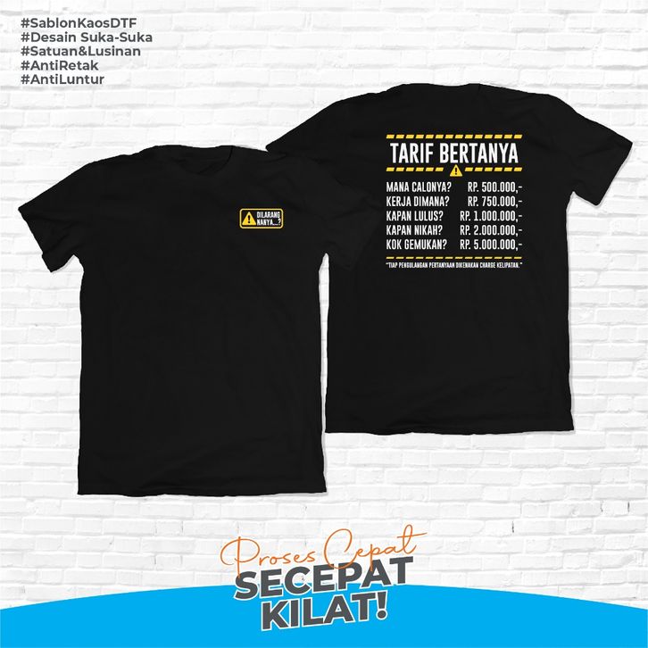 Kaos Tarif Bertanya Dilarang Nanya Baju Kata Kata TShirt Combed 30s Unisex