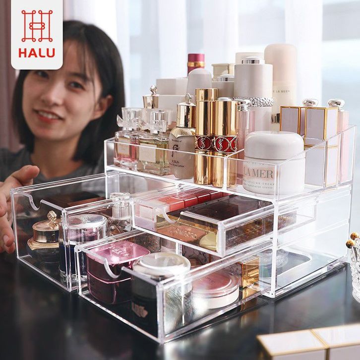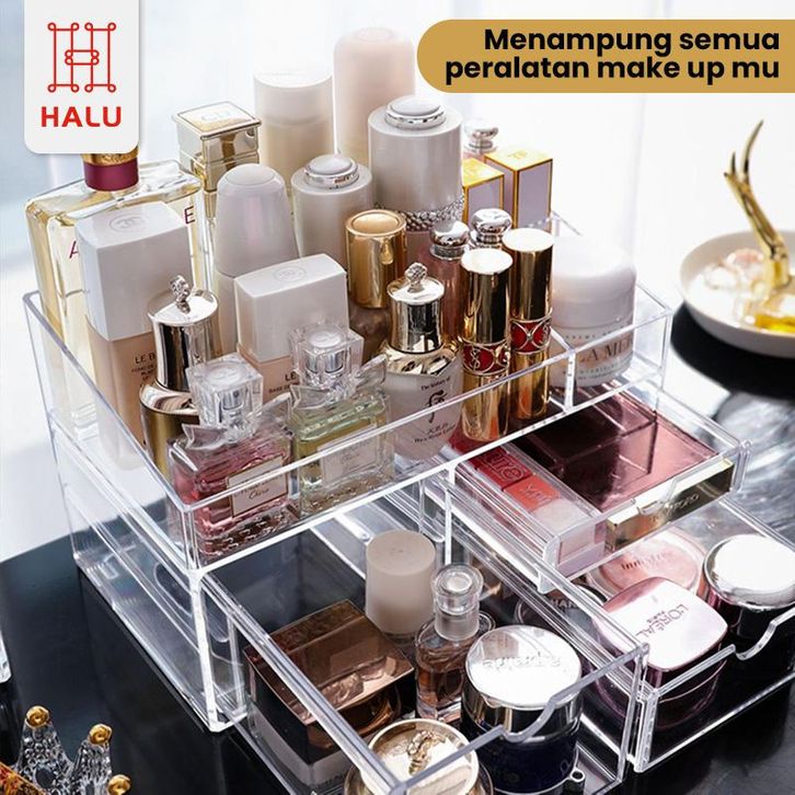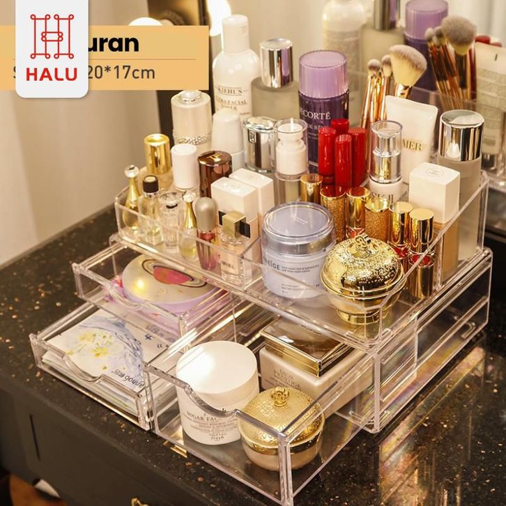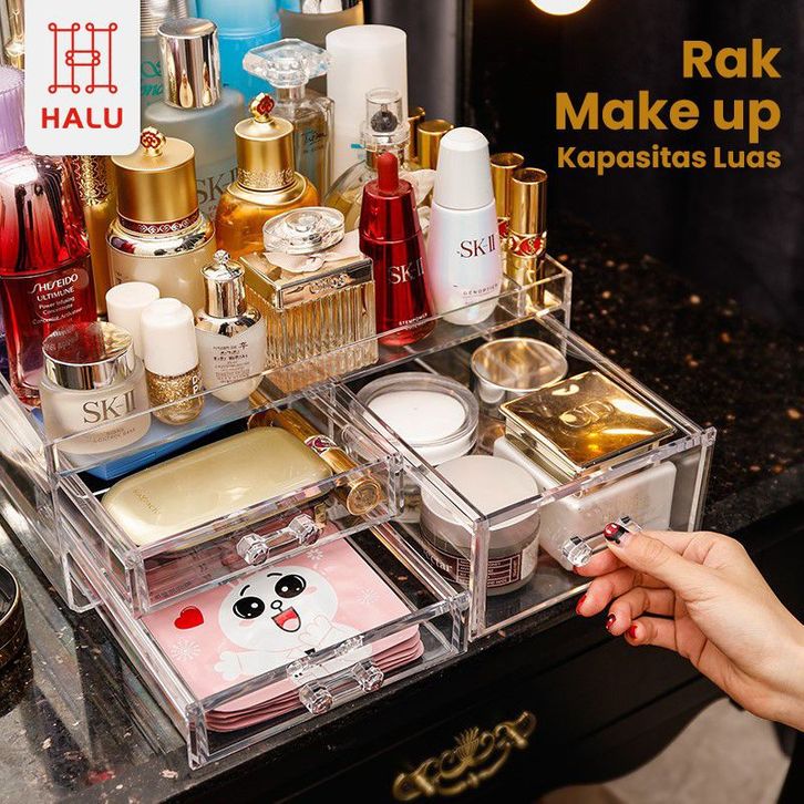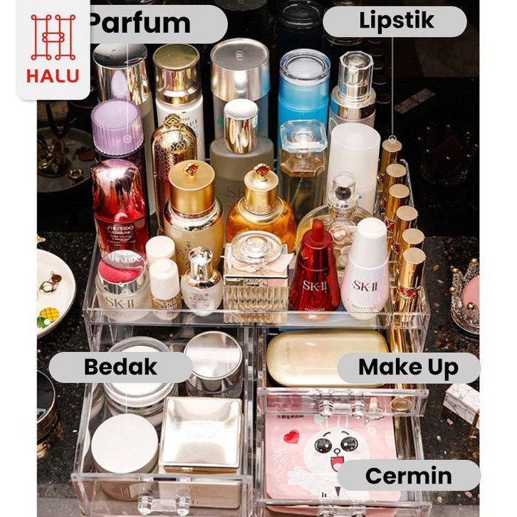 RAK MAKE UP RAK SKINCARE ACRYLIC 2 TINGKAT ORGANIZER MULTIFUNGSI KOTAK PENYIMPANAN MAKEUP DAN SKINCARE PREMIUM HRM302