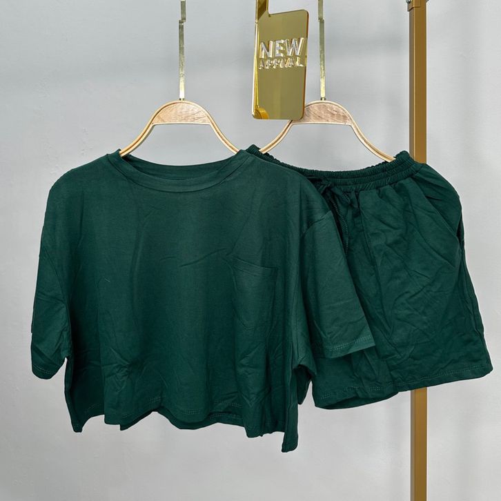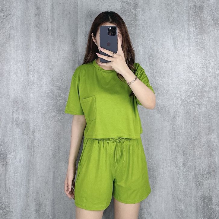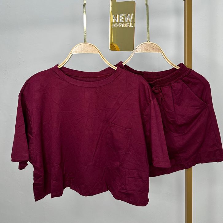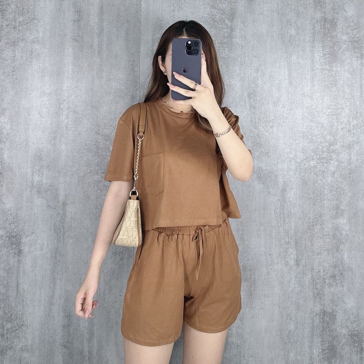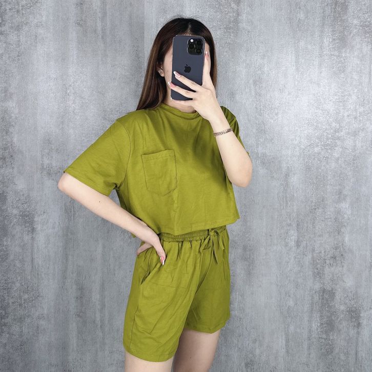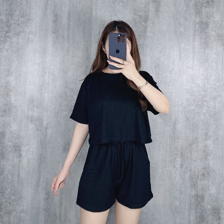 One Set Crop Top Setelan Cewek Dewasa Ladies Collection Satu Set Celana Baju Pendek Casual Santai Keren