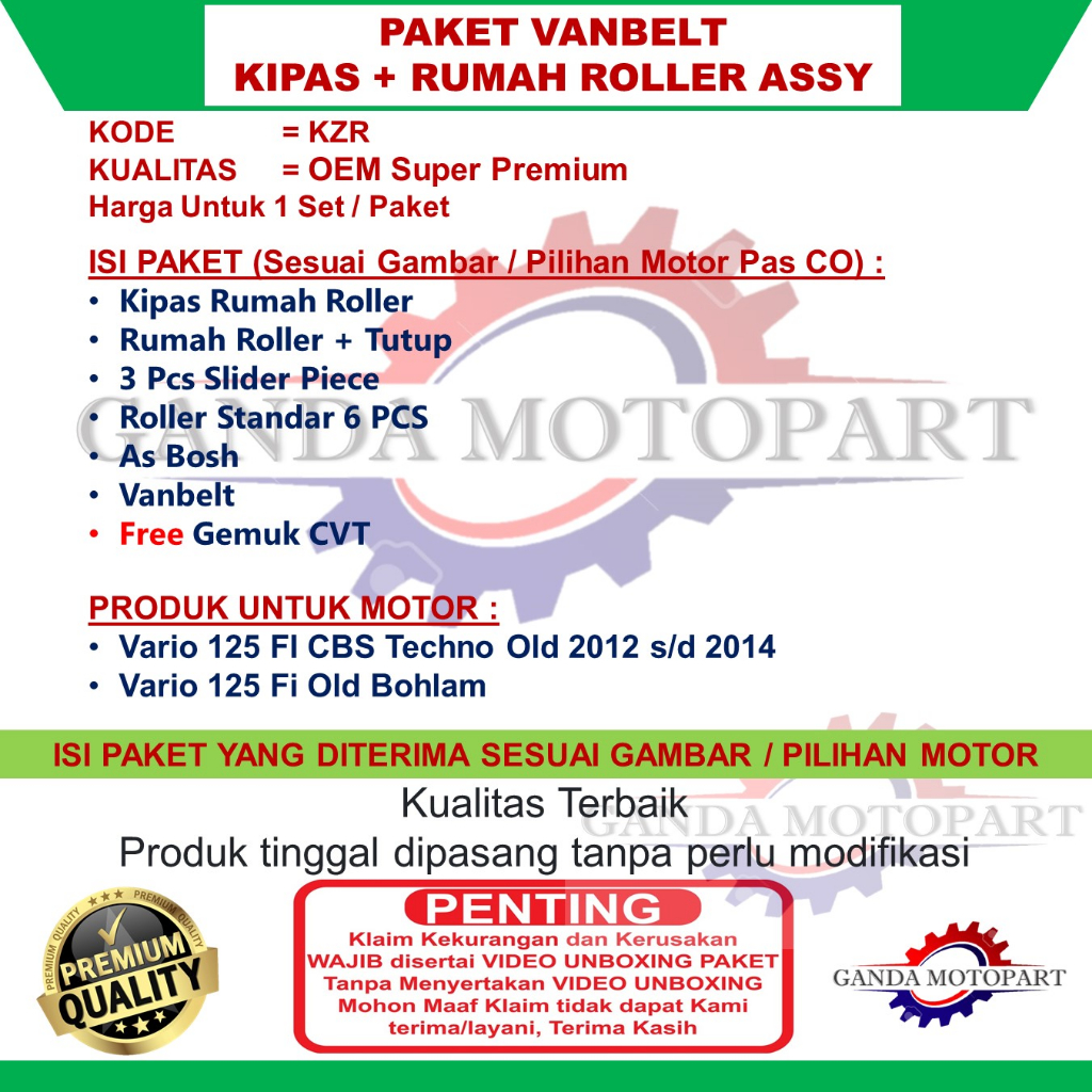 [PROMO]PAKETAN VANBELT KIPAS RUMAH ROLLER VARIO 125 FI CBS TECHNO TEKNO OLD 2012 2013 2014 KZR KWN