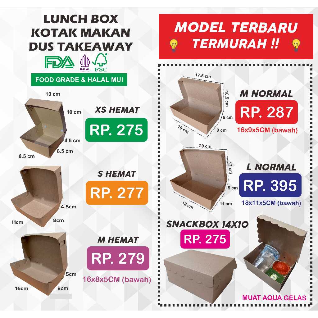 LUNCH BOX PAPER / KOTAK MAKAN / DUS KRAFT COKLAT TAKEAWAY / DUS NASI / KOTAK NASI