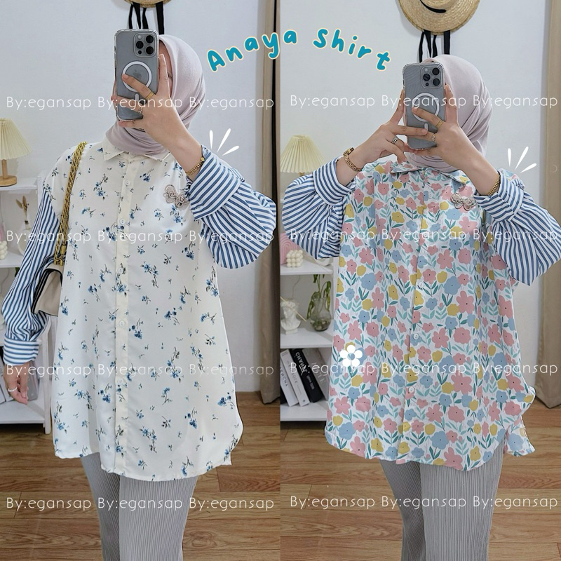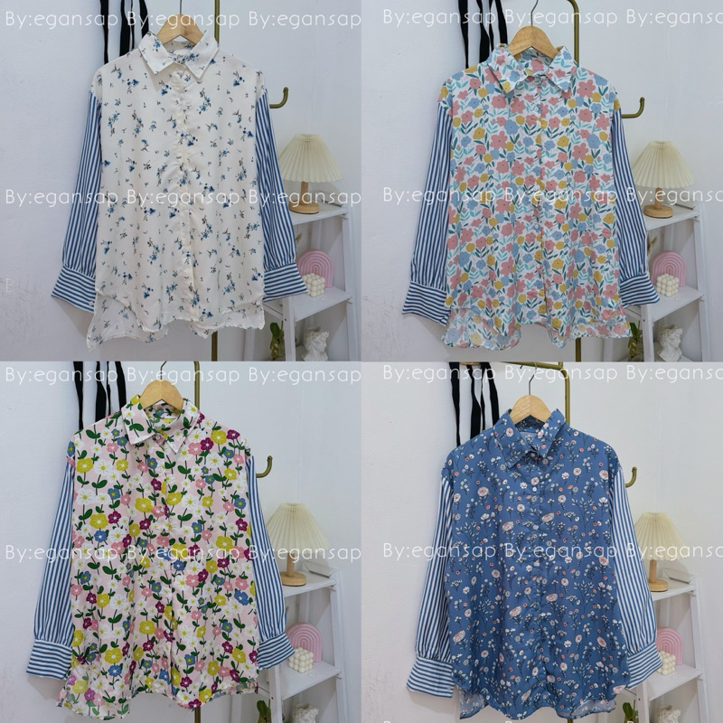 EGANSAP | ANAYA SHIRT KEMEJA VIRAL OVERSIZE KOMBINASI BUNGA KOREAN STYLE ATASAN WANITA FLOWER TERBARU