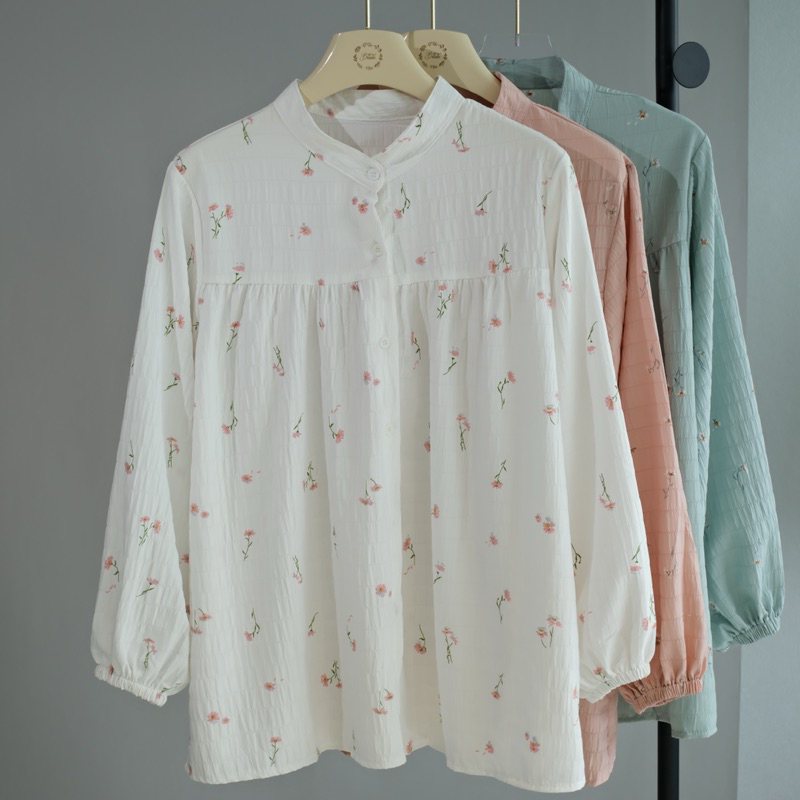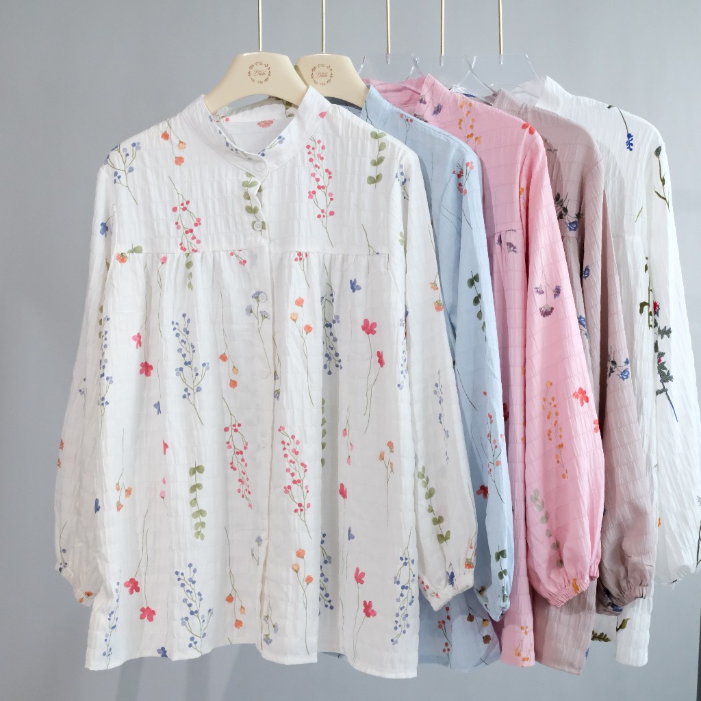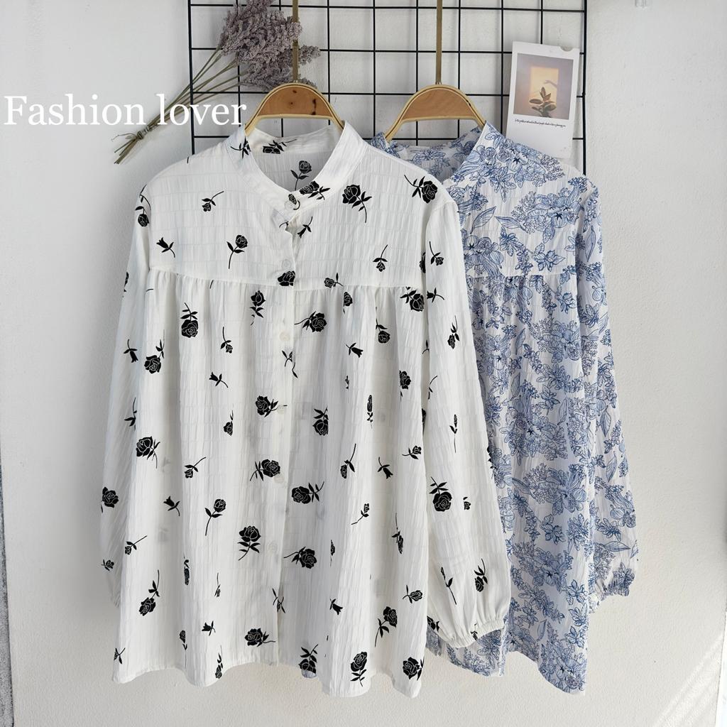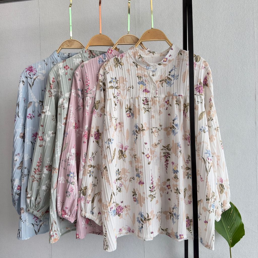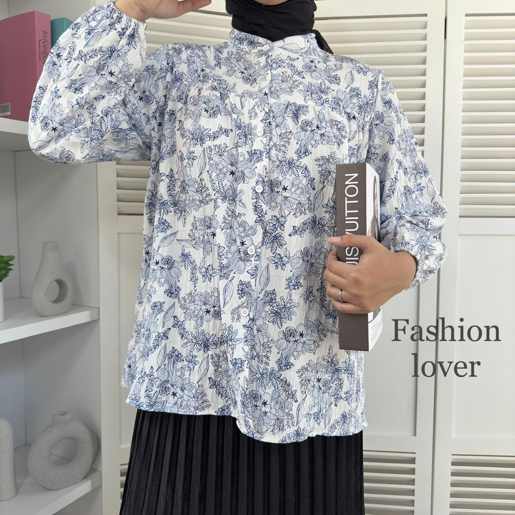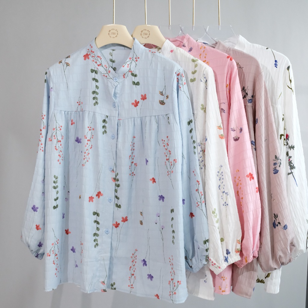 KEMEJA WANITA KOREAN STYLE / KEMEJA WANITA MOTIF BUNGA / PAKAIAN WANITA MUSLIM / PAKAIAN WANITA LENGAN PANJANG