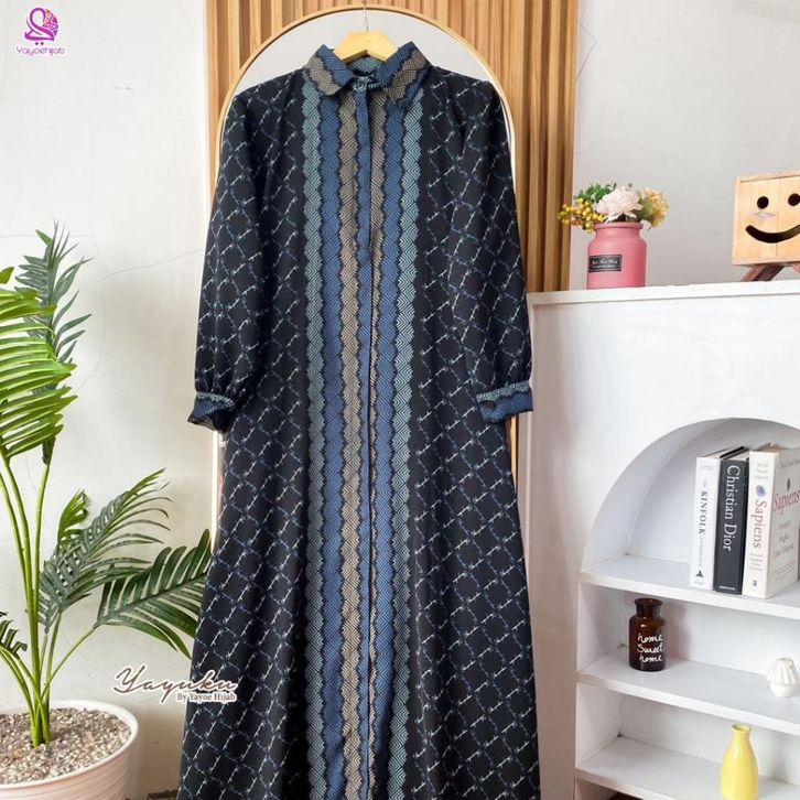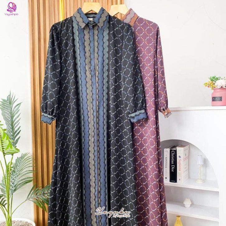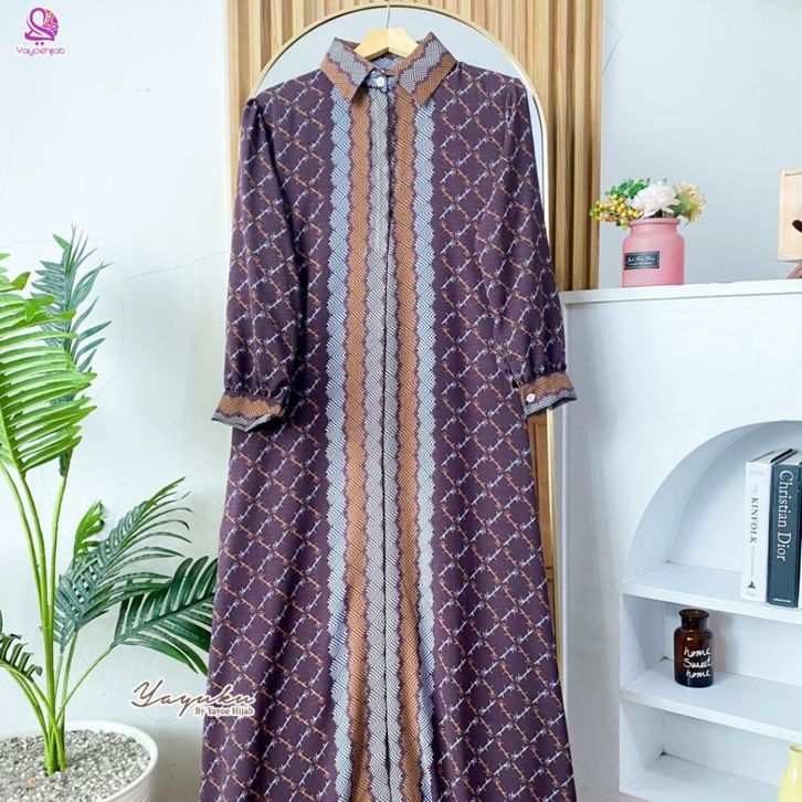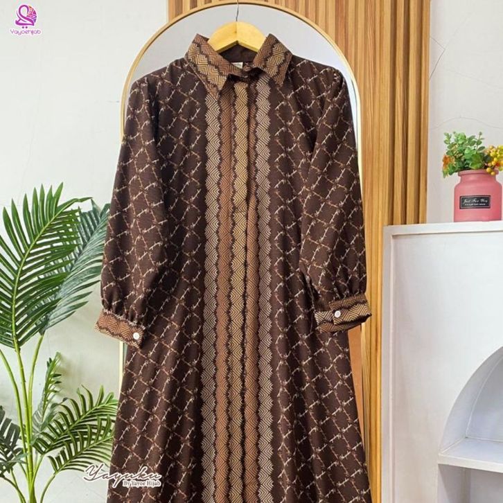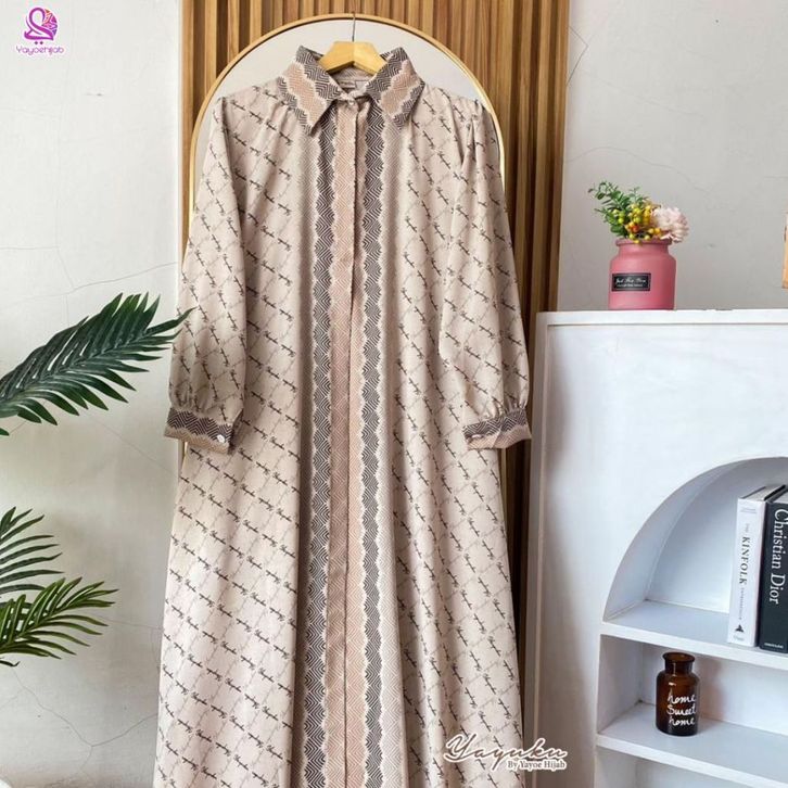 Malika Dress Gamis Kemeja Motif Monogram Elegan Bahan Premium Adem Nyaman Dipakai Seharian Look Mewah dan Simple