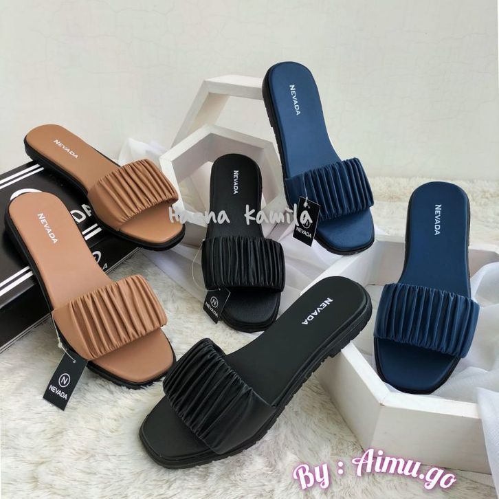 sandal slop kerut dewasa model terbaru simple dan kekinian