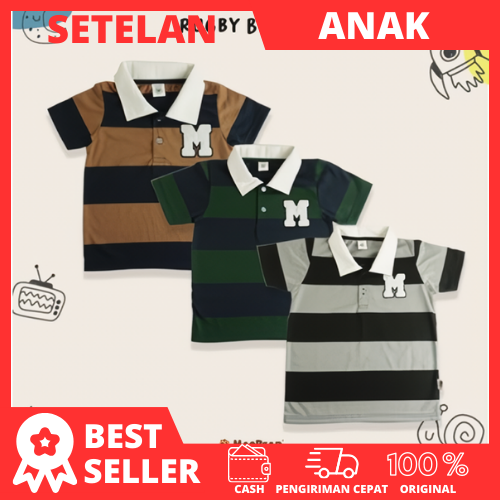 Baju Anak Remaja Laki-Laki Kaos Polo Rugby Stripe Salur Bigbloc 2 Tahun - 10 Tahun Kaos Anak Laki Laki Kekinian Murah