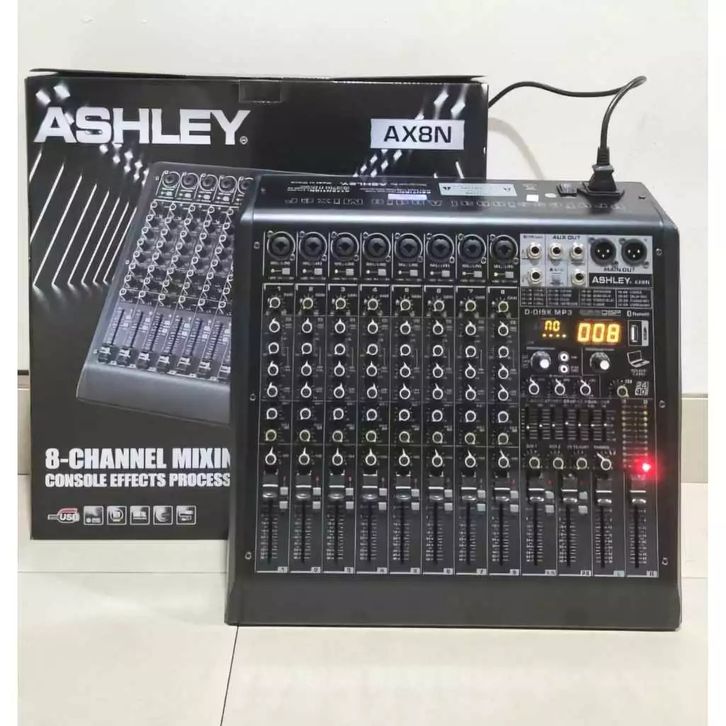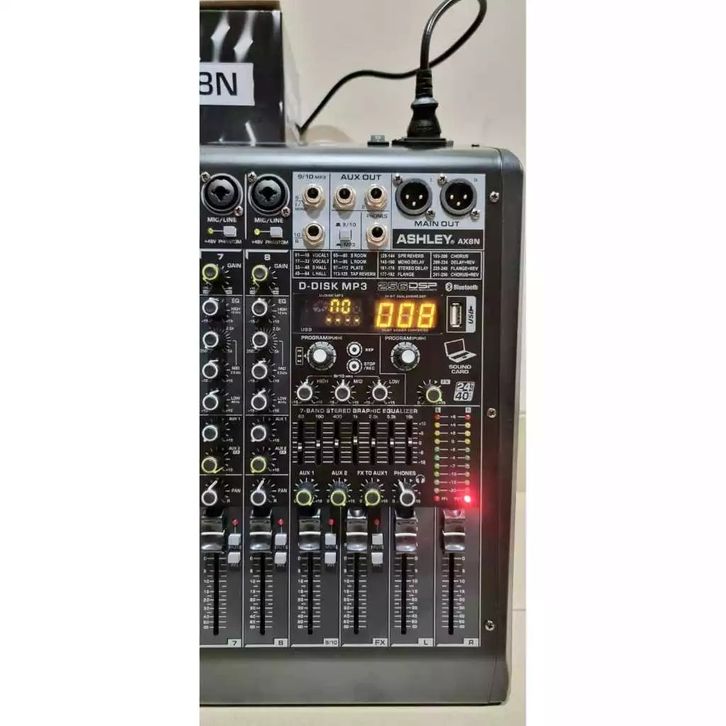 AX8N VERSI BARU MIXER ASHLEY AX8N ( 8CH FULL ) USB,MP3,BLUETOOTH ORIGINAL