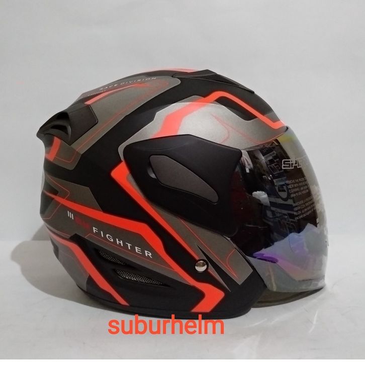 HELM GM FIGHTER GV2 BLACK ORANGE DOFF HALF FACE SINGEL VISOR SNI ORI