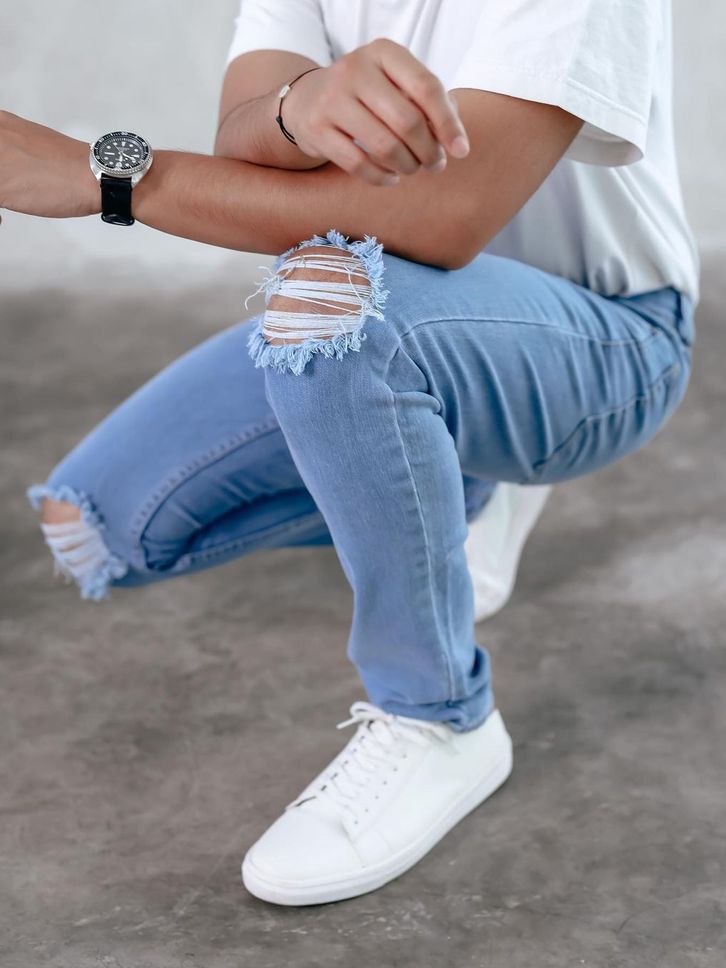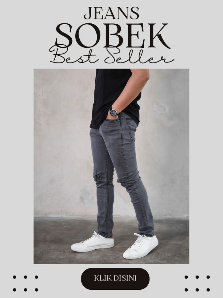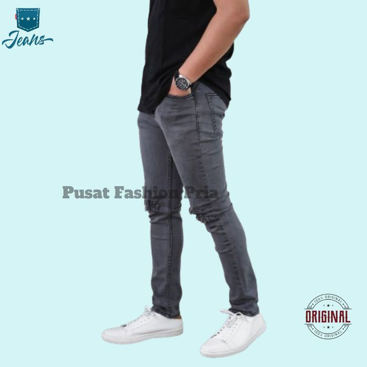 Celana Jeans Pria Slimfit Sobek Lutut Ripped Denim Pensil Soft Jeans Stretch Skinny Premium Size 27-38
