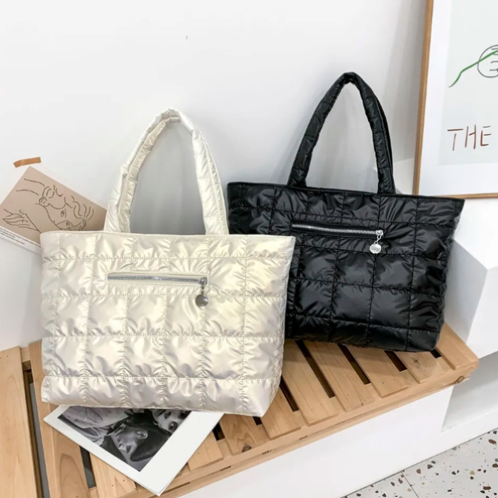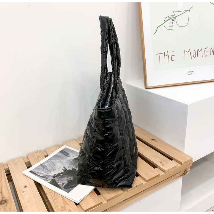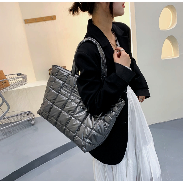 TAS PUFFY BAG SHIMMER TOTE BAG BUBBLE RESLETING BIG SIZE SHOULDER BAG PARASUT GLOSSY SUPORT LAPTOP
