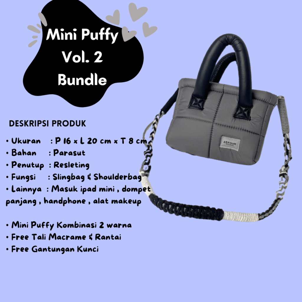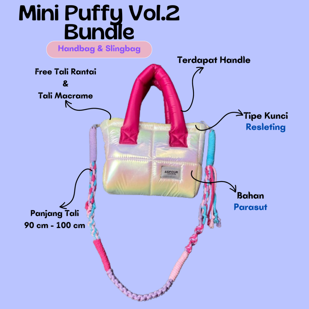 TAS PAKET BUNDLE V2 ASFOUR MINI PUFFY + MACRAME [ GESER FOTO ] ONE SET TAS PUFFER SLINGBAG ANTI AIR