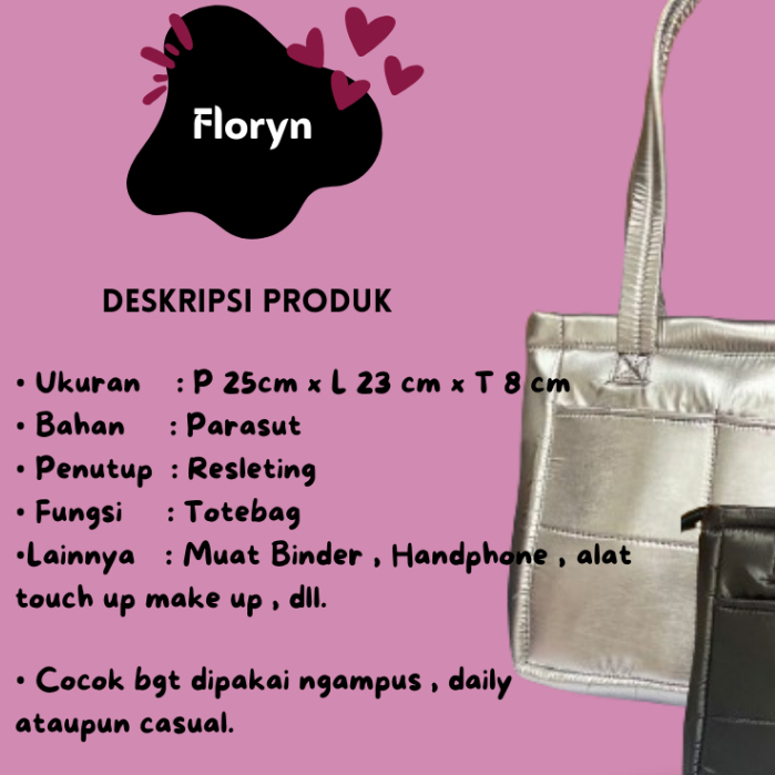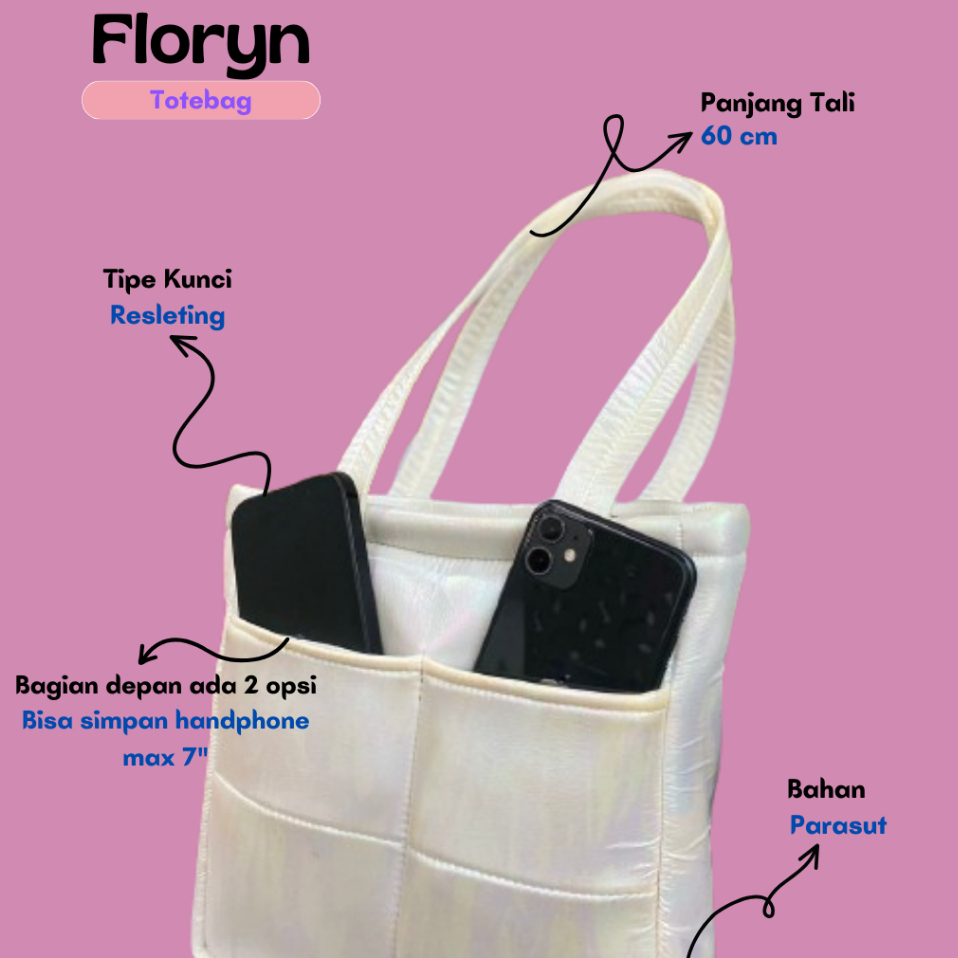 TAS PUFFY - FLORRYN TOTE TAS WANITA TOTE BAG WANITA TAS PARASUT TAS PUFFY TAS KULIAH TOTE BAG SHOULDER