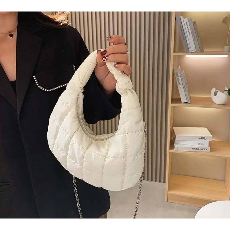 TAS PUFFY BAG FELICIA / TAS SELEMPANG WANITA TALI RANTAI / TAS WANITA BUBLE IMPORT HAND BAG TAS PESTA