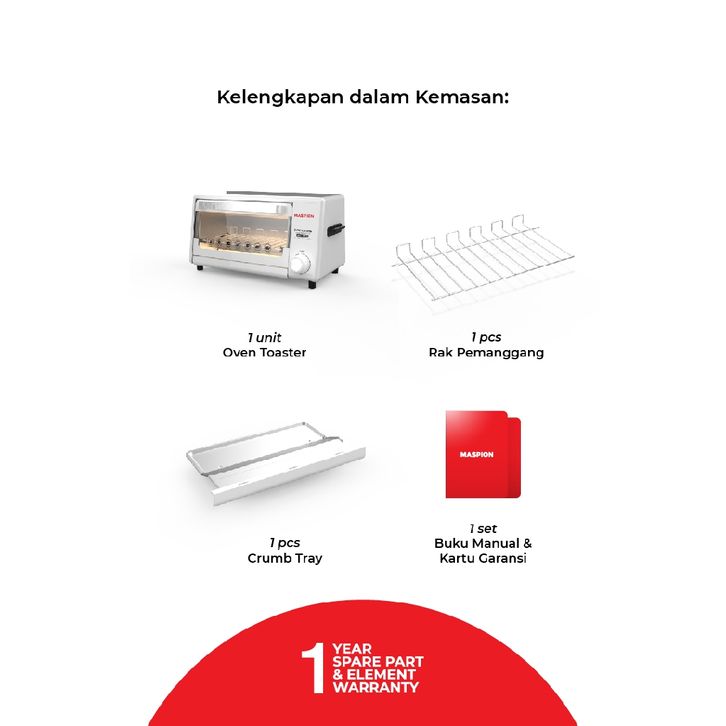 Oven Toaster Tungku Pemanggang Oven Listrik Microwave Open Listrik Low Watt Maspion 901S (9L)