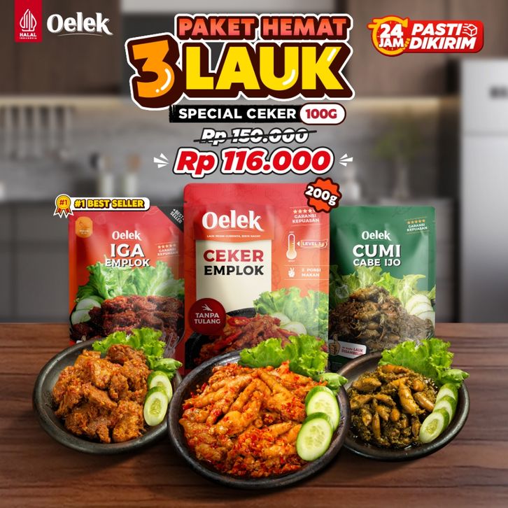 Oelek Paket 3 Bebas Pilih Ceker Mercon Emplok Tanpa Tulang Iga Emplok Cakalang Balado Cumi Makanan siap saji terdekat