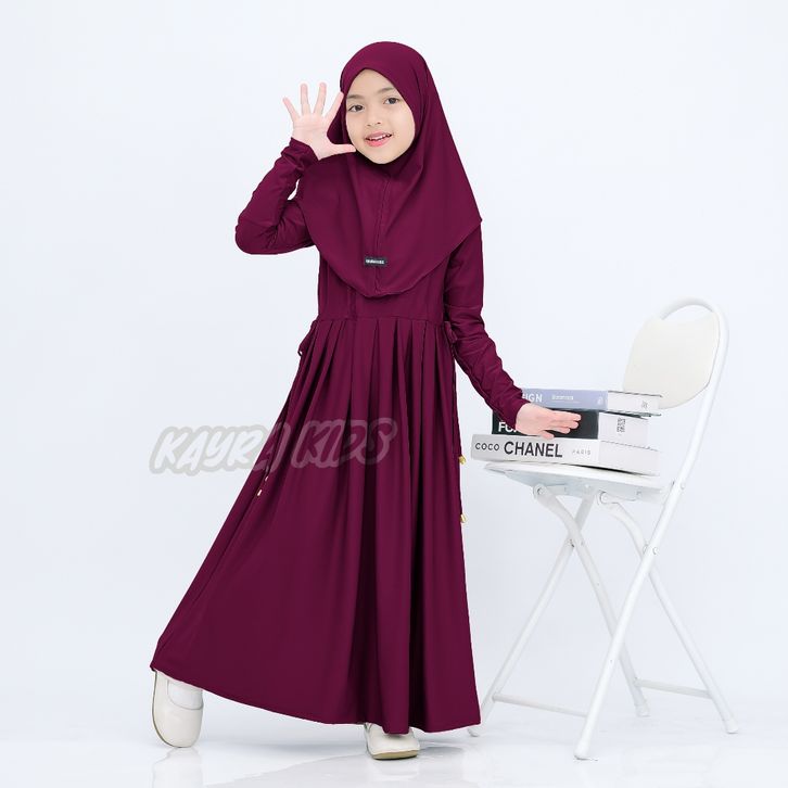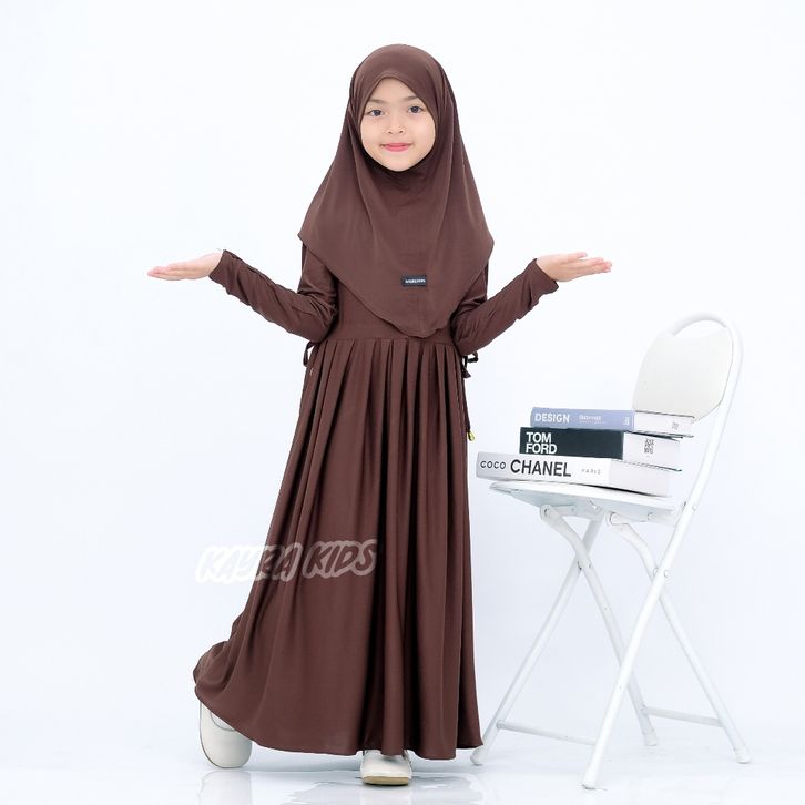 Gamis Abaya Anak Inara Serut Pinggang Usia 0-9 Tahun Bahan Jersey Lembut dan Adem Free Hijab Muslim Panjang Nyaman