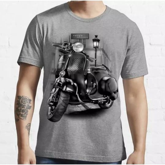 Kaos Oblong Cowok Dewasa Vespa Tshirt Distro Cowok Kasual Santai Atasan Baju Lengan Pendek Hitam Abu Katun Size L XL