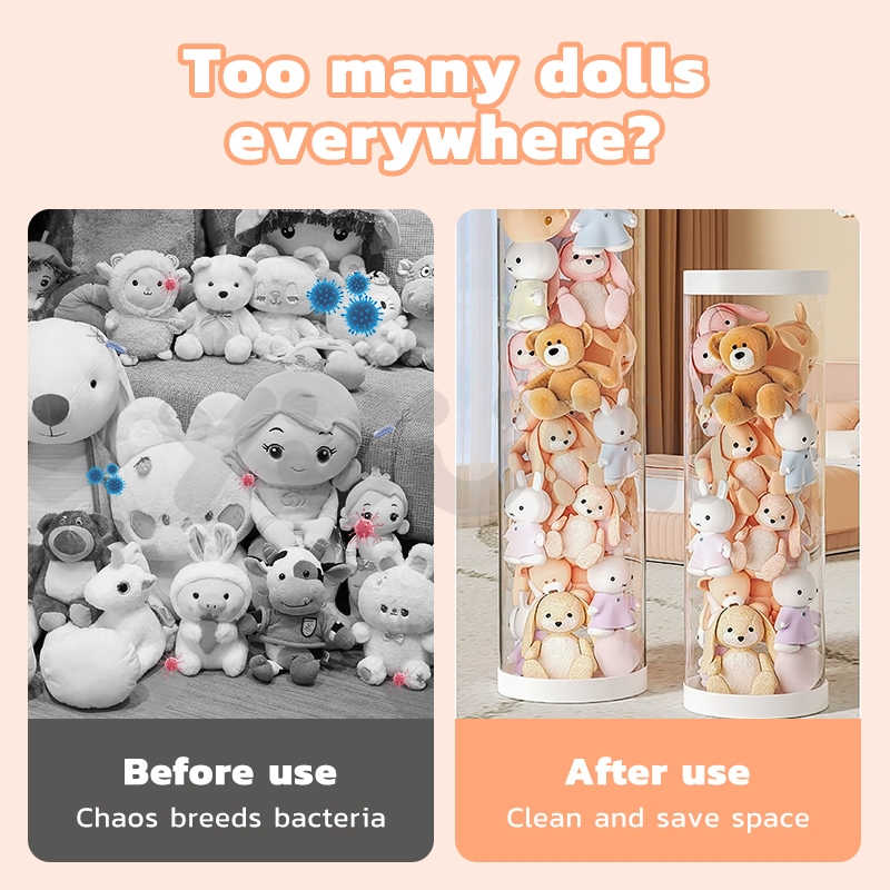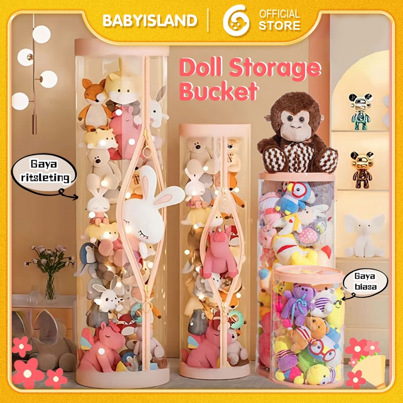 Boneka Tempat Penyimpanan Dengan Ritsleting Doll Storage Bucket Transparan Tabung Storage Organizer