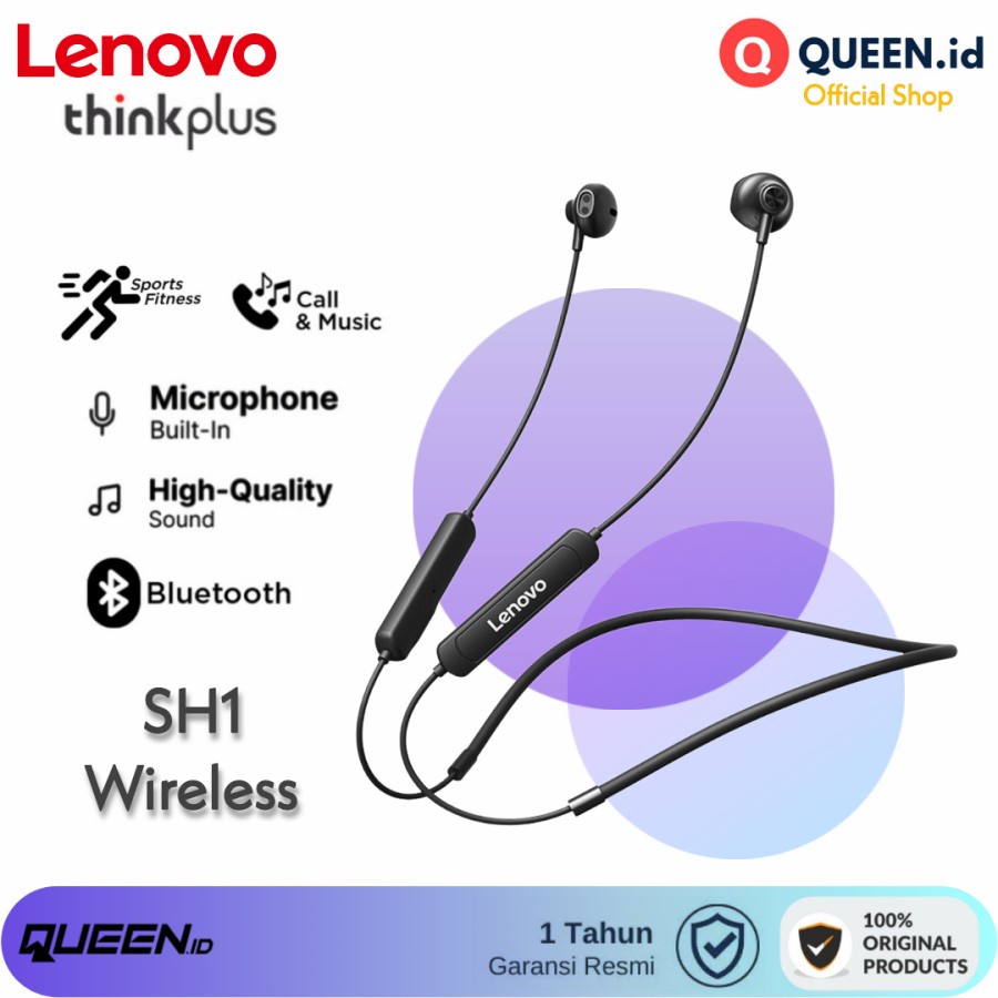 Lenovo ThinkPlus SH1 Wireless Bluetooth 5.0 Sport Earphone Headset IPX5 Stereo - Sport Headset LENOVO SH1 Garansi Resmi