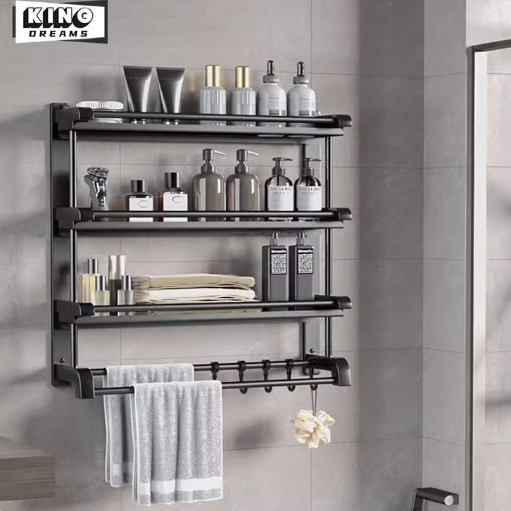 KING Dreams Rak Sabun Kamar Mandi Stainless Hitam Dinding Rak Bumbu Dapur Dipasang Tanpa Harus Dilubbangin Dibagian