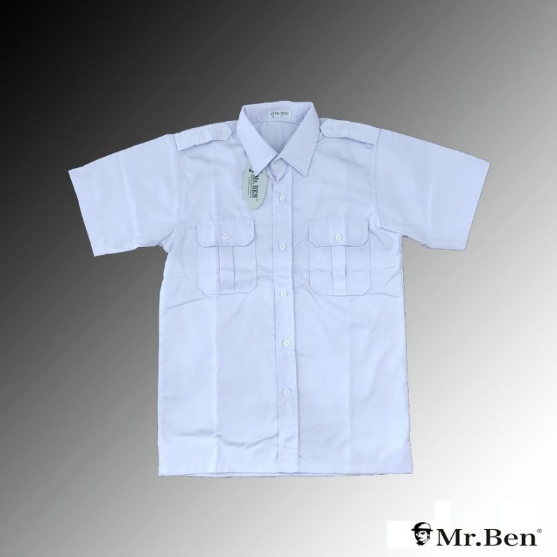 MR.BEN BAJU DINAS PUTIH KANTONG DUA BERPANGKAT PDH PDL LAPANGAN SATPAM