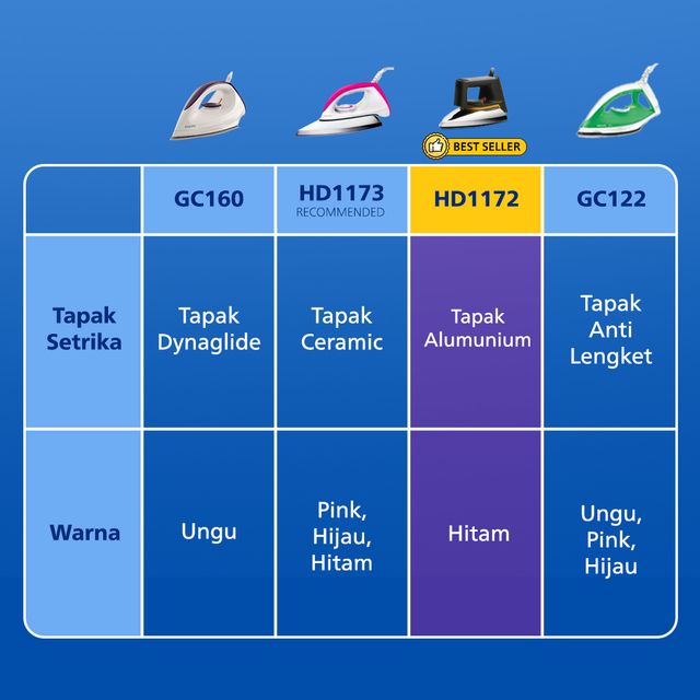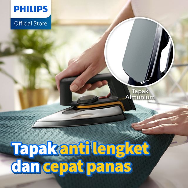 Philips Setrika Kering Classic HD1172/99 - Hitam, Tapak Anti Lengket