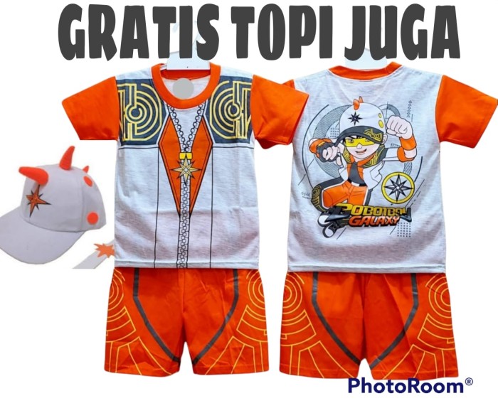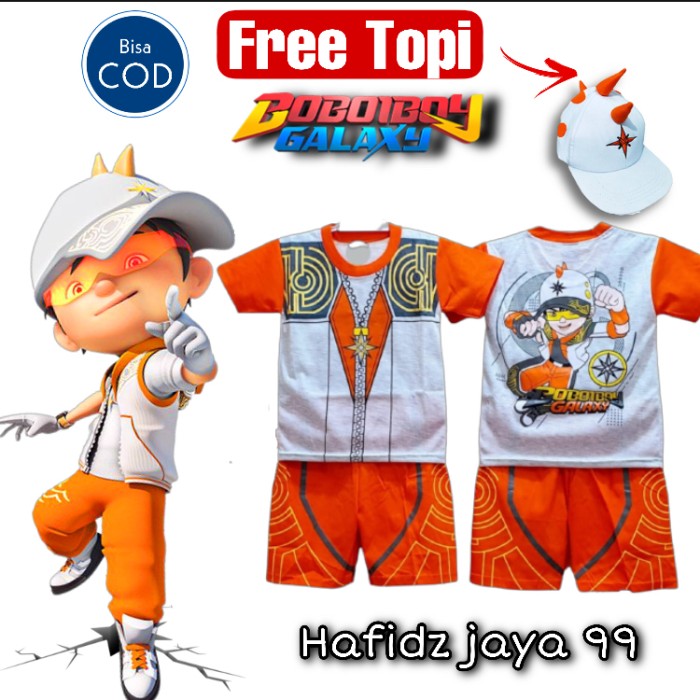 SETELAN ANAK BAJU BOBOIBOY SUPRA /API HALILINTAR / SOLAR / STELAN KAOS - BBOI PUTIH+TOPI, TOPI PUTIH SAJA