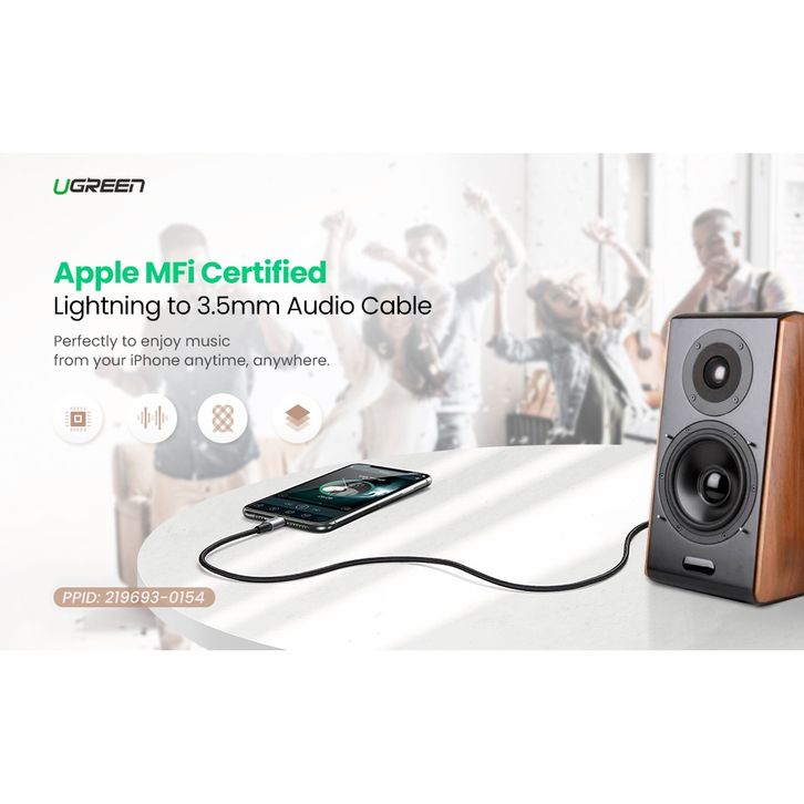 UGREEN KABEL AUX IPHONE LIGHTNING TO JACK 3.5MM, TYPE C TO JACK 3.5MM NYLON BRAIDED