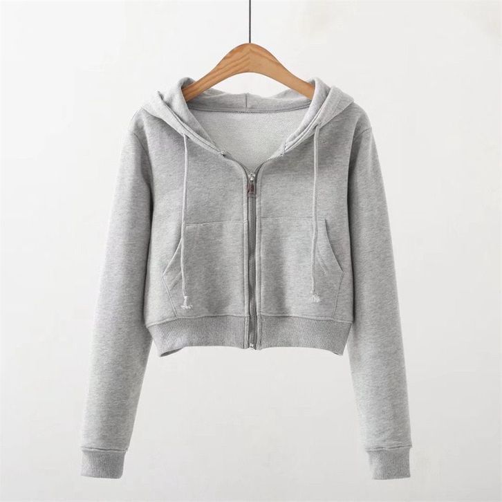Sweater Hoodie Jaket Basic Croptop Zipper Resleting Wanita Fashion