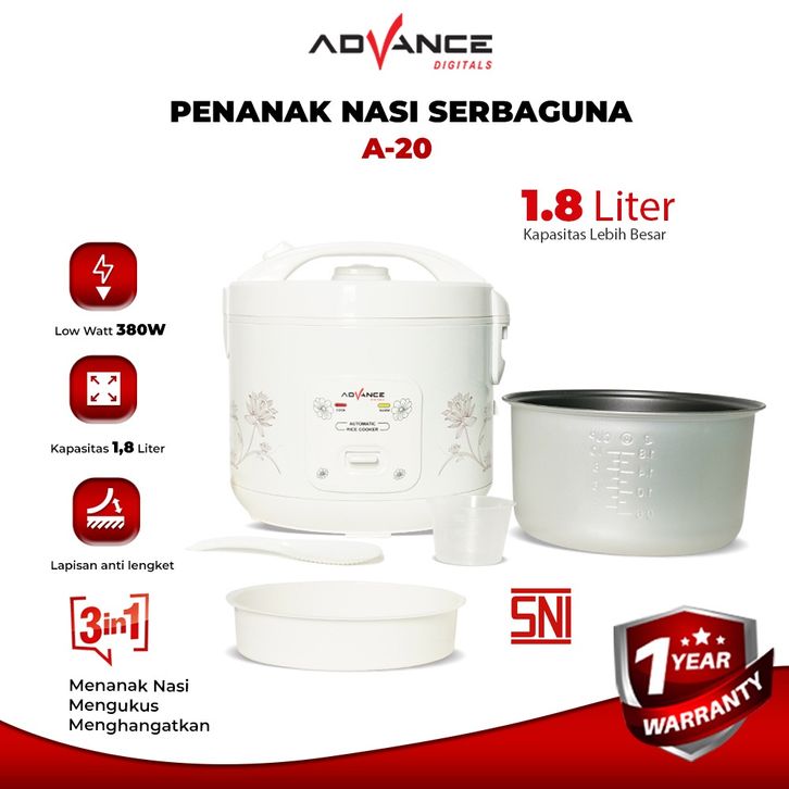 ADVANCE A20 RICE COOKER 1.8 LITER MAGIC COM 3 IN 1 MAGICOM MEJIKOM PENANAK NASI MINI 1.2 L STENLIS KECIL