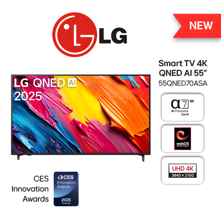 LG SMART TV 4K 55 INCH QNED AI 70 TELEVISI DIGITAL ANDROID GOOGLE MURAH 50 32 INCI IN 55QNED70ASA