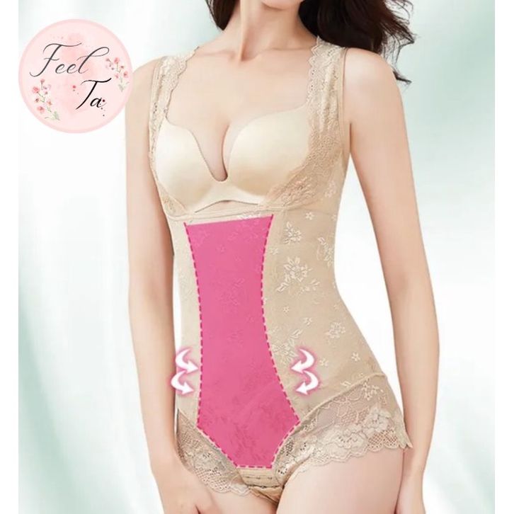 FeelTa Bodysuit Korset Kait Bawah Bukaan Mudah ke Toilet Pengecil Perut Pelangsing Tubuh Melahirkan Post Partum Import
