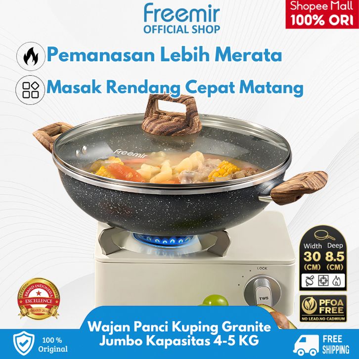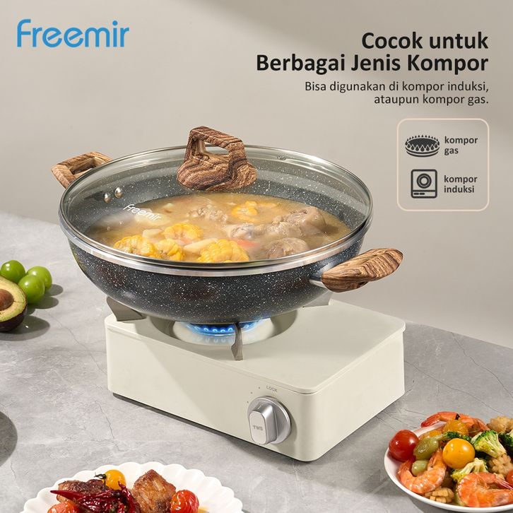 WAJAN ANTI LENGKET PENGGORENGAN PANCI JUMBO BLACK WOOD SERIES 30 24 CM SERBAGUNA BISA SEMUA JENIS MASAKAN