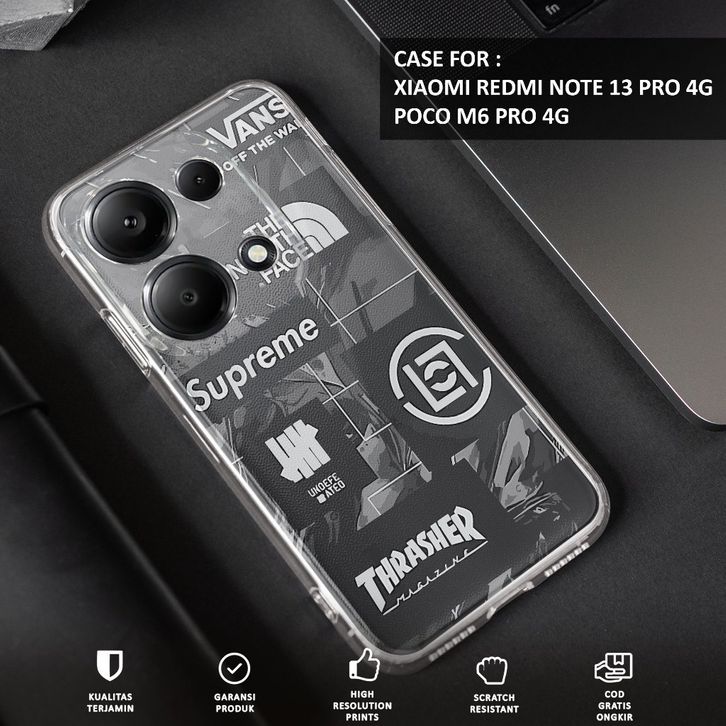 Case POCO M6 PRO 4G / XIAOMI REDMI NOTE 13 PRO 4G - Motif ( ARTIC X BRANDED ) - Softcase Premium Fourside - Bening Trans