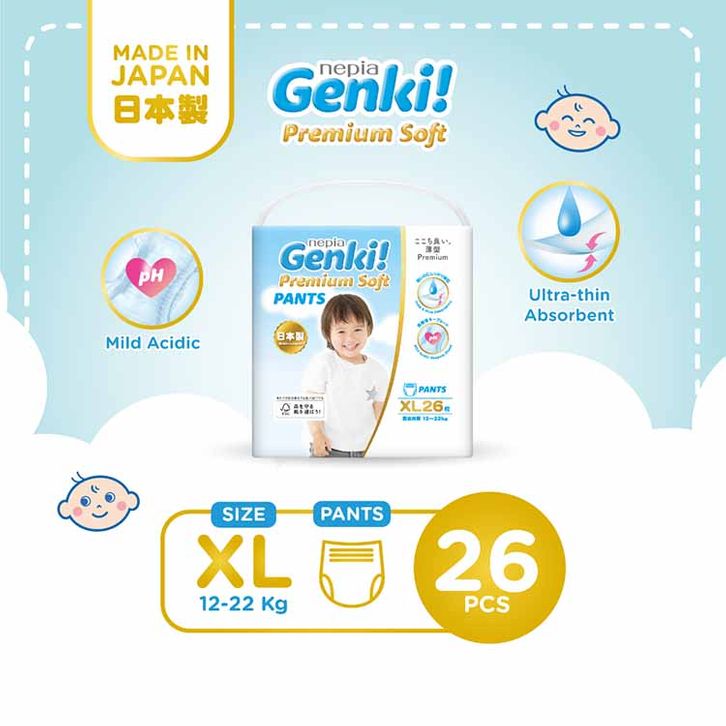 Popok Pampers Pempes Nepia Genki Premium Soft Pants XL26 Tipe Celana Termurah