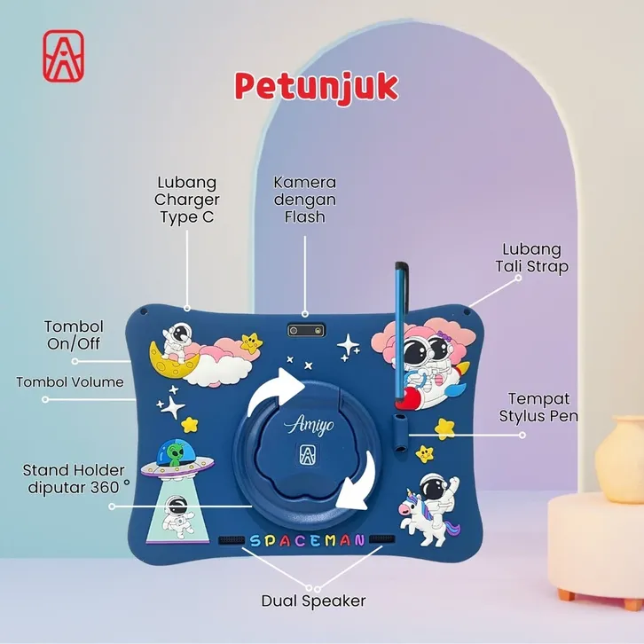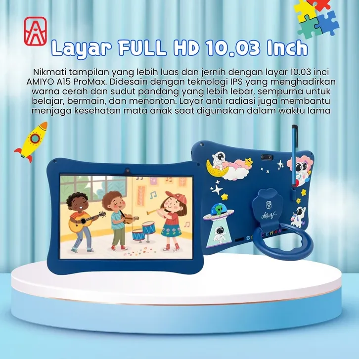 Amiyo Tablet A15 PRO MAX 10.03 Inch 4GB/64GB Tablet Edukasi Anak WiFi Only Android 13 Anti Radiasi