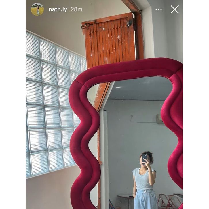 standing mirror cermin aesthetic/cermin bulat/cermin dinding/cermin wastafel standing mirror full body terlaris